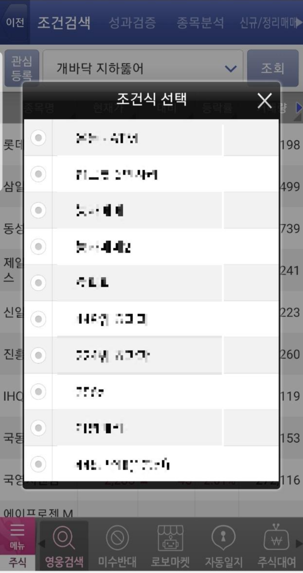 현 상황 조건에 맞는 종목들이 노출됩니다.
