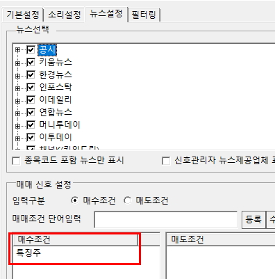 매수조건에 특징주 라는 텍스트를 추가 합니다.